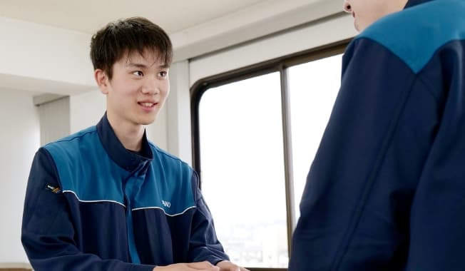 入社後の新人研修の時から先輩社員が、業務上のみならず悩みや困りごとを気軽にいつでも相談に応じます。また定期的な1on1ミーティングを実施し、フォローアップも行っています。